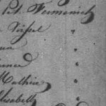 Now, I’m lost on a few of the other entries. The wife is listed as what looks like either “Marie” or “Vorpal.” Peter and his wife both have another word before their names, which I can’t make out. I’m only assuming it means either “Husband” or “Father” or something similar since I seem to see it on other families in the list, which would make his wife listed as “Vorpal.” According to Mathias’ marriage record, his mother is listed as Anne Marie TURSELL. I have yet to find her in the census records since I can only find the family in 1860+ and she is not listed. Though, I’m pretty sure she made the trip since they have another son in Wisconsin in 1849.