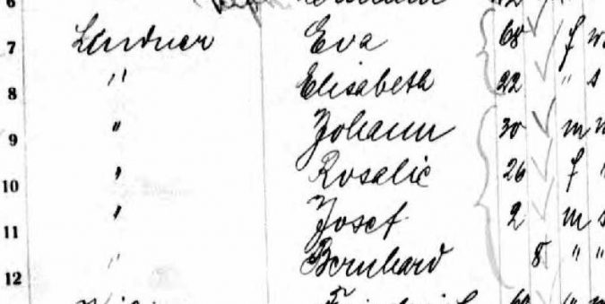 No one on Ancestry had a passenger list attached to their John Lindner entries. I mean, he came into New York in 1908, the record had to be there. That was when Ellis Island was being used. So, I plugged in different combinations of options into the search through the “New York, Passenger Lists, 1820-1957” database. I went through each one and almost gave up when I spotted the name “Yohann Lendner” at the bottom of the results. The arrival date was a month off from the naturalization record (29 Feb 1908), but the birth was very close. I clicked on it to confirm it was wrong when I spotted his immediate family that matched, two siblings that matched, and then the jackpot, his mother (my 3rd-great-grandmother) that matched.