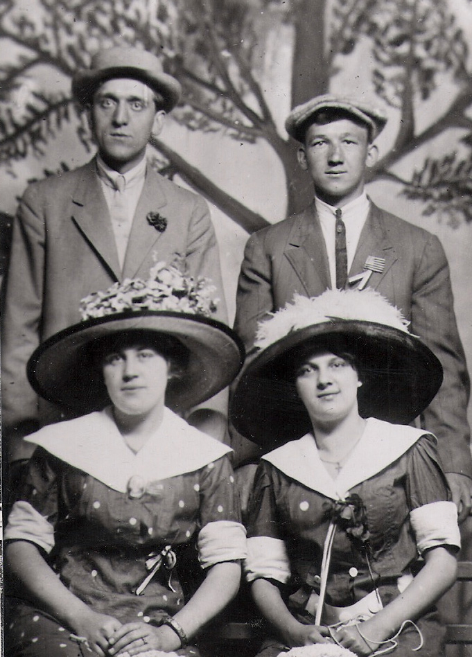 This photo is from July 4th, 1913. Back row is Frank Gierszewski and Edwin Cybela. Front row is Mary (Zalewski) Gierszewski and Frances (Zalewski) Cybela. Frances and Mary are my great-great-aunts. Frank and Mary later changed their surname to Giersch.