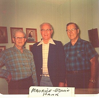 This photo is of three of the Corrigan sons of Thomas & Emma Jane Corrigan. Maurice (my great-grandfather), Edwin, and Hank. Maurice passed away in 1990 at the age of 91. Hank passed away in 1986 at the age of 79. Edwin was the Corrigan that lived the longest out of all 9 children. I met him a few times at family reunions. He passed away only a few years ago in 2005 at the age of 95.