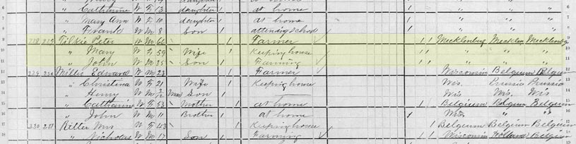 Johann is again listed in the 1880 census living with his parents who are still in Grafton, Henry (listed here as Peter) and Mary. I don’t know where John was since 1860, as you saw in the 1870 Census post. I have no idea if he was married and now no is longer married due to a death or an abandonment, etc. Maybe he went off to work somewhere. Hopefully this site will help me find that.