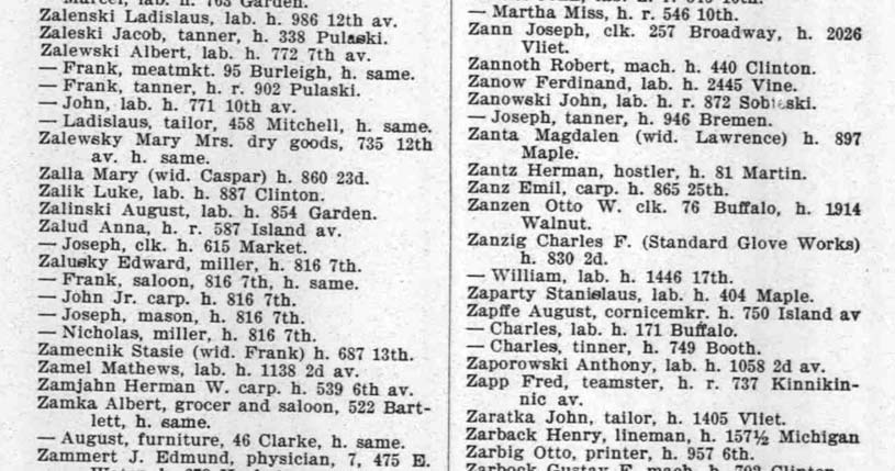 Frank is now listed as a “tanner” instead of “laborer.” He was probably always a tanner since he was listed as one in his first city directory listing. They probably just generalized his occupation in previous directories. Milwaukee’s east side, where Pulaski is located, was known for it’s tanneries and breweries.