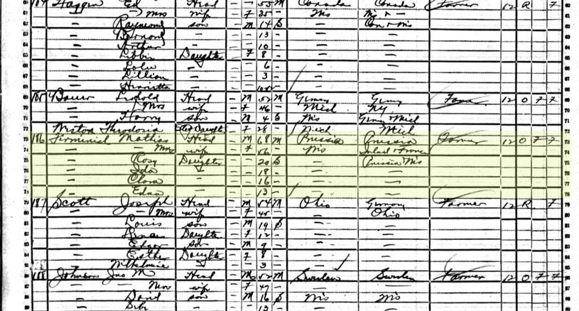 Mathias and his family are listed in the 1905 Wisconsin State Census living in Sanborn, Ashland Co., Wisconsin. His wife is just listed as “Mrs Firmenich” as are most other wives in the list.