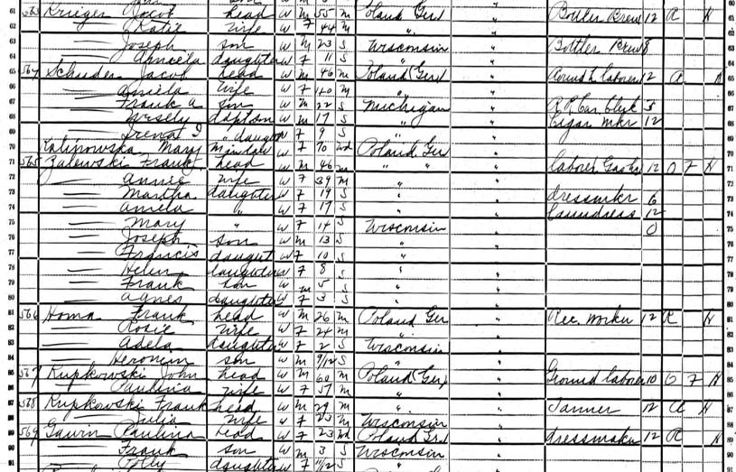 Frank and his family listed in the 1905 Wisconsin State Census for Milwaukee. Agnes is now listed as she was born in 1902.