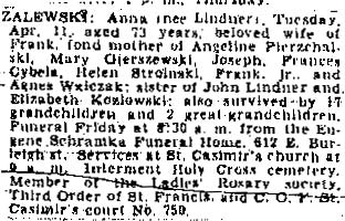 Frank’s wife, Anna (nee Lindner), passed away on April 11, 1939 at the age of 73. Their daughter, Martha, preceded her in death in November 1930. Also preceding her was their infant daughter, Elsa, who traveled over from Germany but never made it to Milwaukee. She was buried at Holy Cross Cemetery in Milwaukee along with Martha.