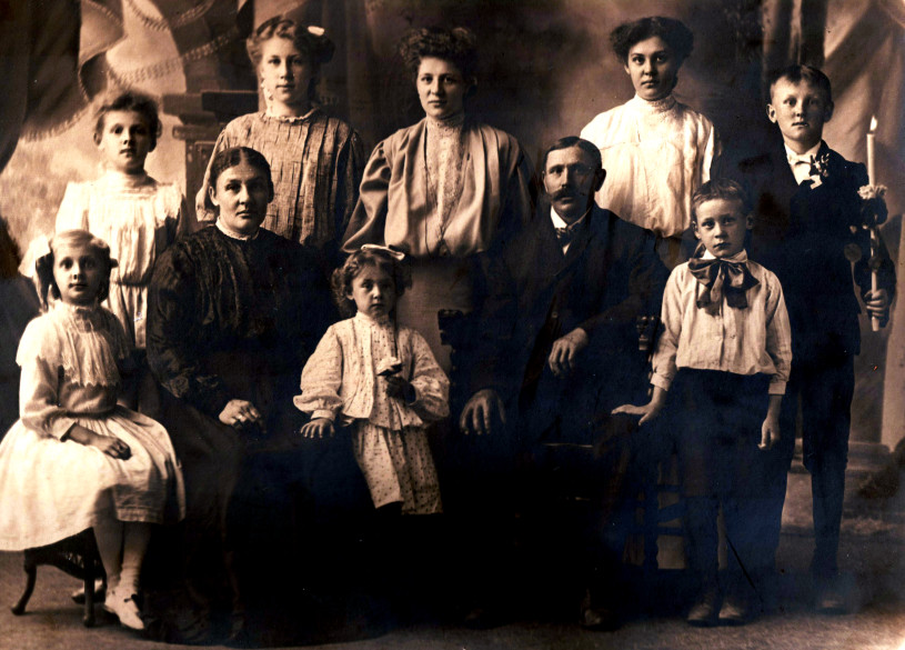 Frank is pictured below with his family in Milwaukee, Wisconsin in about June 1907. This is the first photo of Frank I had seen after it was shown to me by my parents and one of the first photos in my genealogy research. The photo looks to be taken during, what is assumed to be, the confirmation of my great-grandfather, Joseph (far right) as he is holding a candle and is close to the right age at the time.