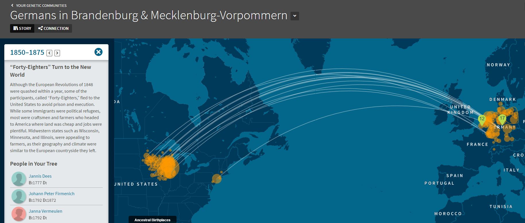 The purple-ish group at the top is from my Corrigan line as the larger one is my father’s cousin. The red group at the left, I think, is a collection of Polish matches. The small teal group under the red is my Thielke line as the larger teal circle is my mom’s cousin. The pinkish group under that one is my Van Price/Van Parijs Dutch side. The green and orange on the bottom right is mainly my mother’s French-Canadian matches. There are a lot of descendants from those original French immigrants as you can see by all of the inter-matching between them. The single pink circle above me is my one and only Zalewski match. You can see why that line is difficult to research. The rest of the randomly colored and white circles are either one-off matches or matches I have yet to organize.