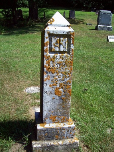 The headstone of my wife’s 3rd-great-grandmother Margaret KEARNS from her father’s maternal side. Born in 1822 in Ohio, she first married Nelson ENYART (sometimes spelled ENGART) in 1841. There is mystery surrounding what happened to Nelson, but in 1875 she ended up marrying Robert MORAN, who is actually my wife’s 3rd-great-grandfather from her father’s paternal side. They didn’t have any children, so the branch of that tree didn’t get too twisted. She died in 1890 and is buried near Robert at Tavara Cemetery in Richwood Township in Richland Co., Wisconsin. Photo courtesy of B. Coberley at Find-A-Grave.